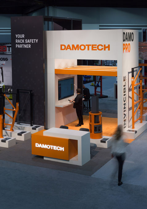 Pour le salon Modex 2020, un salon consacré aux industries fabriquant des produits destinés à l’amélioration des chaînes d’approvisionnement, Damotech voulait mettre en valeur leurs nouveaux articles de protection et de réparation pour les montants de palettiers. La compagnie souhaitait également transmettre leurs valeurs entrepreneuriales: durabilité, sûreté et accessibilité.